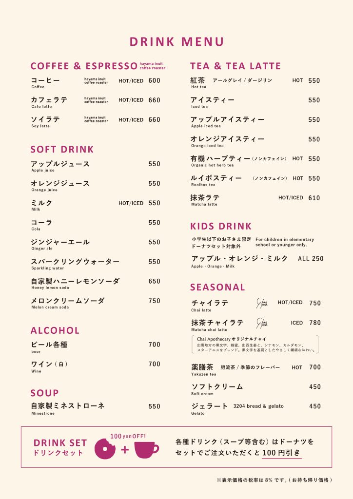 【ミサキドーナツ&カフェ 逗子】フード・ドリンクメニュー