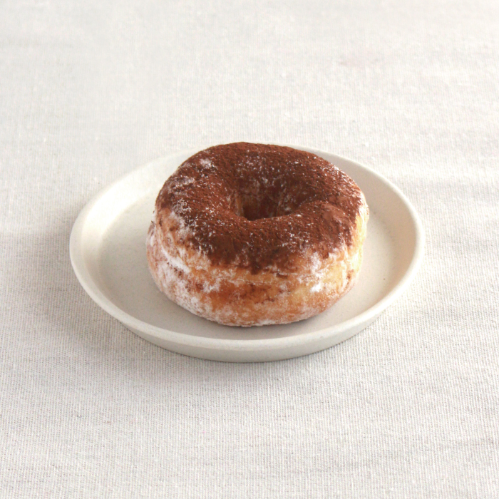 エスプレッソとマスカルポーネの2層のクリームを包み、ココアパウダーで仕上げました。